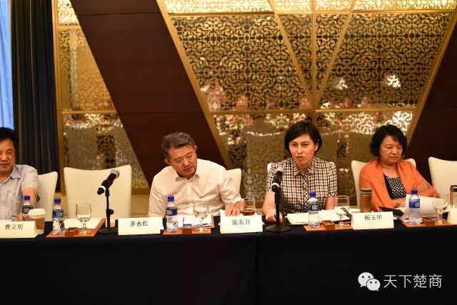 下午的会议由省工商联主席杨玉华主持。会上,首先由省工商联副主席江浩、梅建敏介绍楚商大会议程安排、宣传推广与邀商招商的筹备情况。曹立明部长、茅永红主席、陈东升会长分别作了动员讲话,各地省级商会会长也纷纷建言献策。